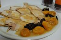 Dorada a la sal con guarnición de espinacas y huevas blancas de Huelva 74 calorías en 100 gramos (estimada)